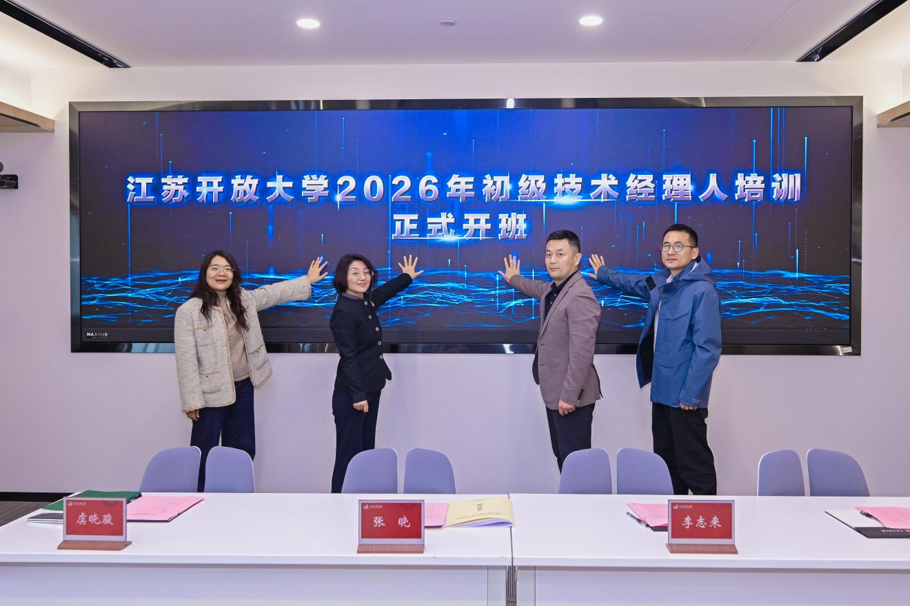 4月22日上午,江苏开放大学2026年初级技术经理人培训班开班仪式在学校定淮门校区举行。江苏开放大学副校长张晓,南京东南集团副总经理、南京人才集团总经理李志来,南京东南集团办公室主任、南京人才集团常务副总经理孙琦杰出席仪式。开班仪式由科研处副处长虞晓骏主持。